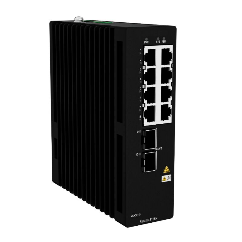 The S5731I-L8T2SN is a Huawei DIN rail mounted two-layer industrial grade gigabit switch designed specifically for harsh industrial scenarios such as power, transportation, and intelligent manufacturing. It features wide temperature range, high protection, and strong lightning protection, meeting the stable access requirements of industrial networks
